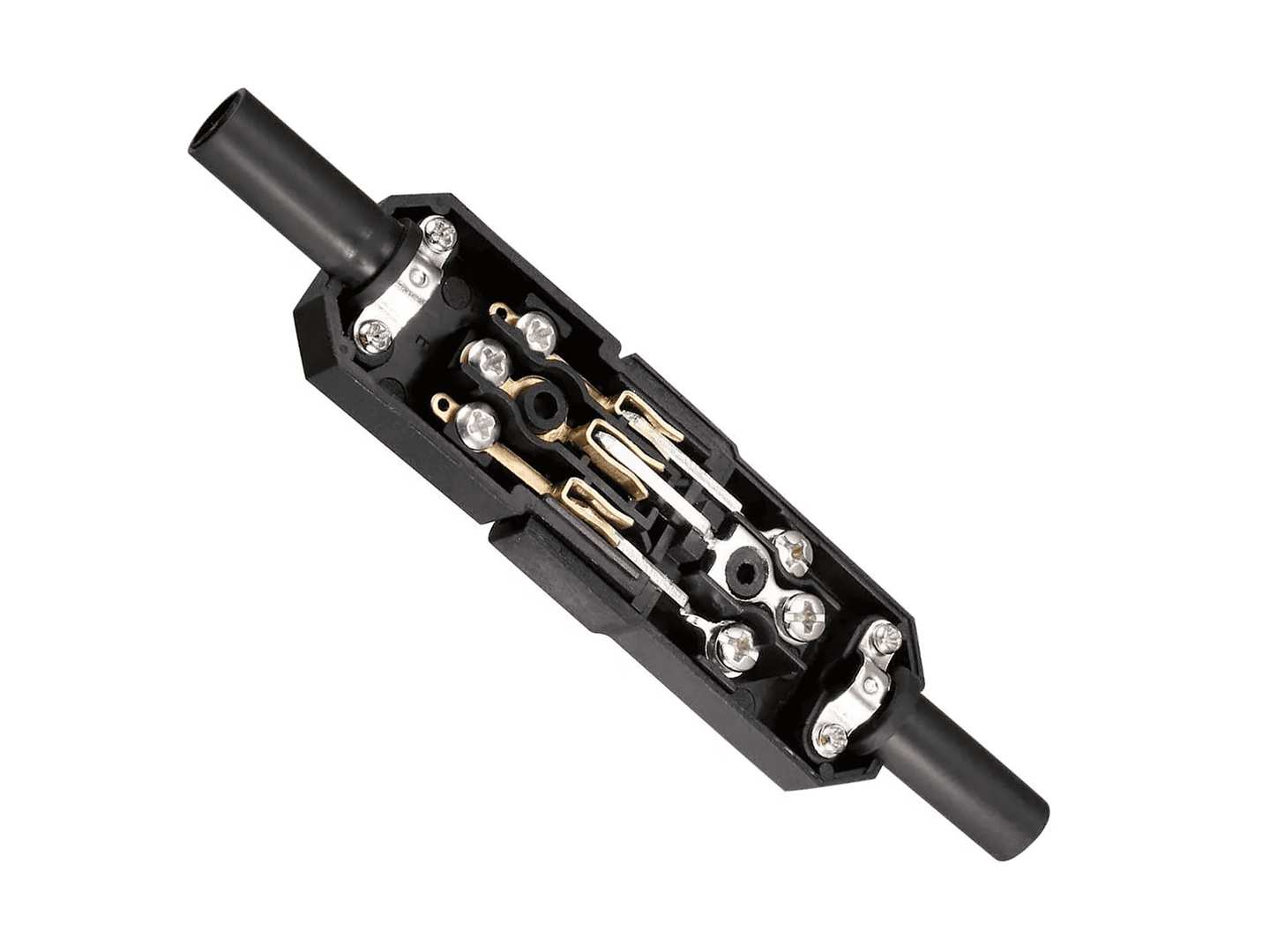 Está construida para aplicaciones de alimentación AC, incorporando un diseño compacto y robusto que garantiza una conexión estable, reduciendo falsos contactos y mejorando la seguridad eléctrica. Su carcasa en plástico técnico proporciona aislamiento adecuado y protección mecánica durante el uso continuo.
